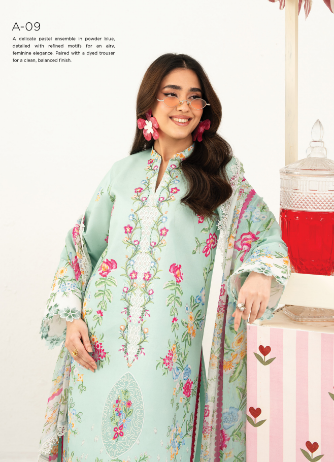 FABRIC: LAWN EMBROIDERED SHIRT DUPPATA: PRINTED | CHIFFON AND VOIL LAWN DUPPATA TOUSER: DYED TROUSER