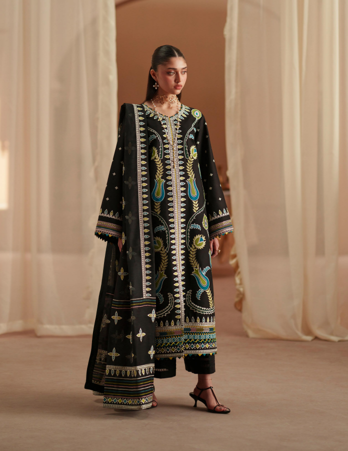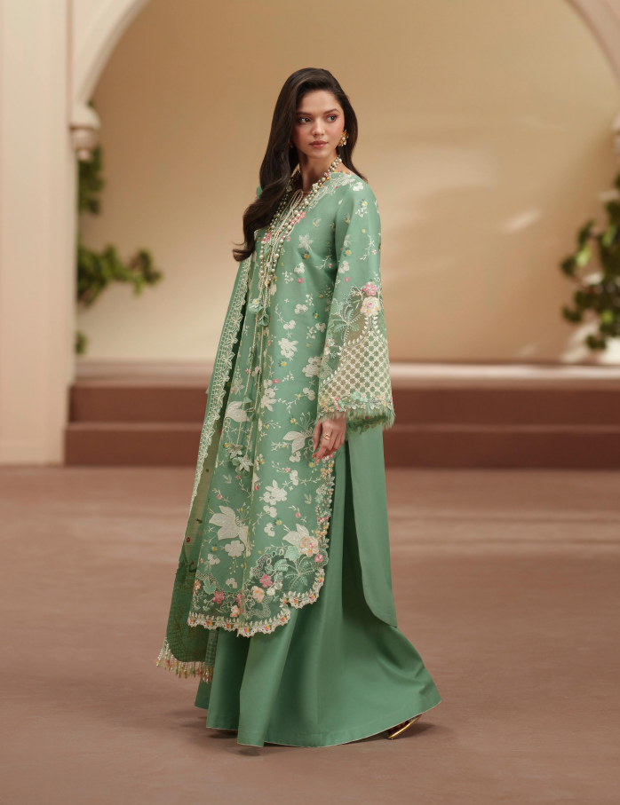 FABRIC: LAWN EMBROIDERED SHIRT DUPPATA: PRINTED | CHIFFON AND VOIL LAWN DUPPATA TOUSER: DYED TROUSER